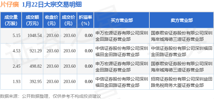 - 2025-01-221月22日片仔癀现2861.6万元大宗交易